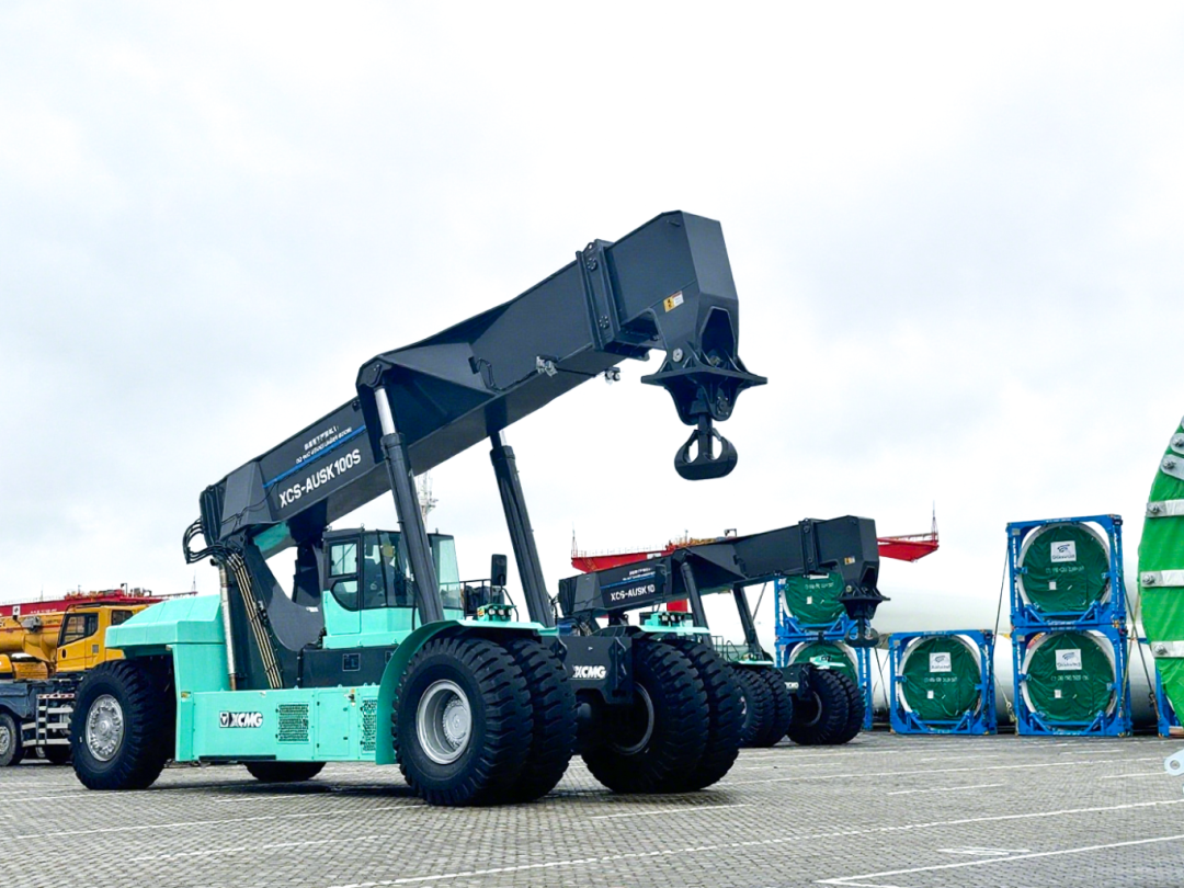 徐工XCS100S風電專用正面吊如“破壁者”應時而生,以三大“殺手锏”橫掃痛點:百噸巨力穩(wěn)擎龐然大物,毫米級定位精度、多場景穩(wěn)定輸出無懼港口風浪。