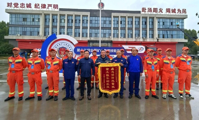 國家礦山應(yīng)急救援山東特勘隊(duì)特意送上“應(yīng)急保障挑重?fù)?dān),徐工鐵軍助救援” 的錦旗,這不僅承載著項(xiàng)目組對徐工裝備與服務(wù)的高度肯定,也成為徐工深耕應(yīng)急救援領(lǐng)域、踐行責(zé)任擔(dān)當(dāng)的生動見證。