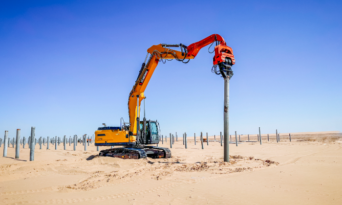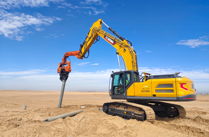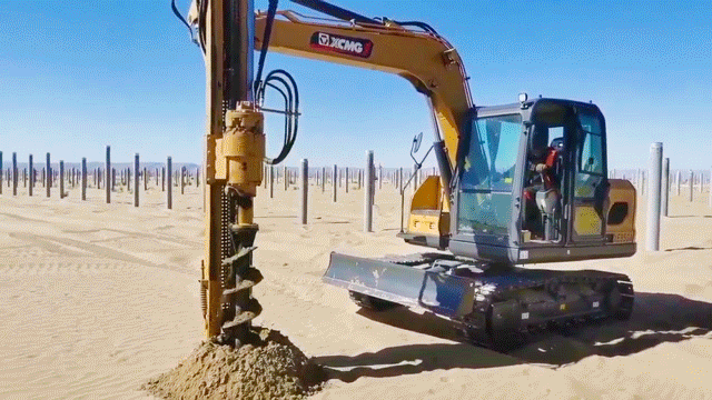 此次徐工挖掘機(jī)參建的巴彥淖爾100萬千瓦光儲(chǔ)+生態(tài)治理項(xiàng)目位于內(nèi)蒙古西部,是自治區(qū)年度重點(diǎn)工程,對(duì)當(dāng)?shù)刭Y源開發(fā)和綠色發(fā)展具有重要意義。 與以往常規(guī)項(xiàng)目不同,此次徐工挖掘機(jī)主要擔(dān)任光伏樁的鋪設(shè)工作,通過改裝振動(dòng)錘和引孔機(jī)等多功能屬具,有效滿足現(xiàn)場(chǎng)多元化施工需求。