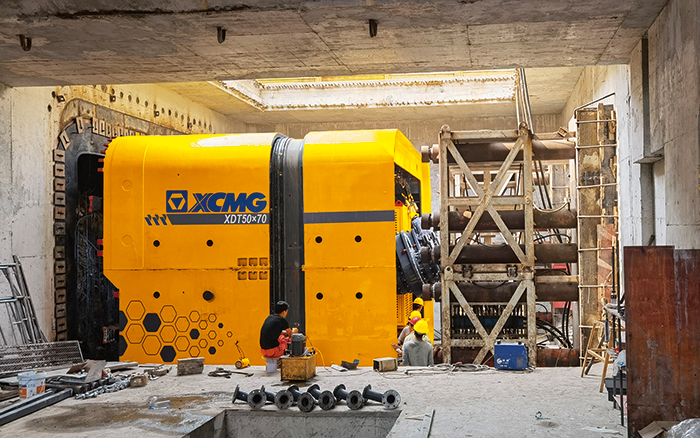鄭州機場至許昌市域鐵路工程鄭州段土建施工02標段,寺東孫站1號出入口目前正在緊張進行中,參建施工的徐工XDT50*70矩形頂管機屬于首秀。