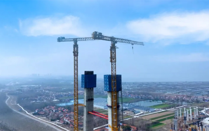 目前,大橋主塔建設(shè)高度已達(dá)144.5米,徐工XGT2230A-100S正助力主塔以平均每周6米的速度迅速“節(jié)節(jié)長高”,全力沖刺年中實現(xiàn)主塔封頂?shù)哪繕?biāo)。
