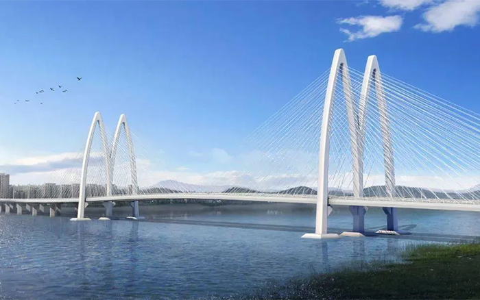 涪江六橋是遂寧首座斜拉橋,主橋?yàn)殡p塔斜拉橋,項(xiàng)目總投資約19億元,路線全長(zhǎng)3215千米,主墩最高118米,是全國(guó)首座無筋鋼殼混凝土組合柔性索塔。項(xiàng)目計(jì)劃于2025年10月建成,建成后將成為遂寧的標(biāo)志性建筑,現(xiàn)已進(jìn)入橋梁主墩索塔施工階段。