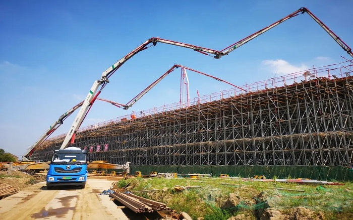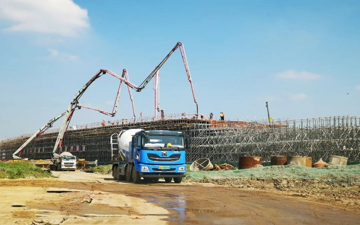 驕陽灼灼,機(jī)械轟鳴。近日,在江蘇省重點(diǎn)交通建設(shè)工程-江陰靖江長(zhǎng)江隧道建設(shè)現(xiàn)場(chǎng),徐工泵車及純電動(dòng)攪拌車多機(jī)合作,憑借先進(jìn)技術(shù)和優(yōu)越性能,圓滿完成橋面混凝土澆筑任務(wù)。