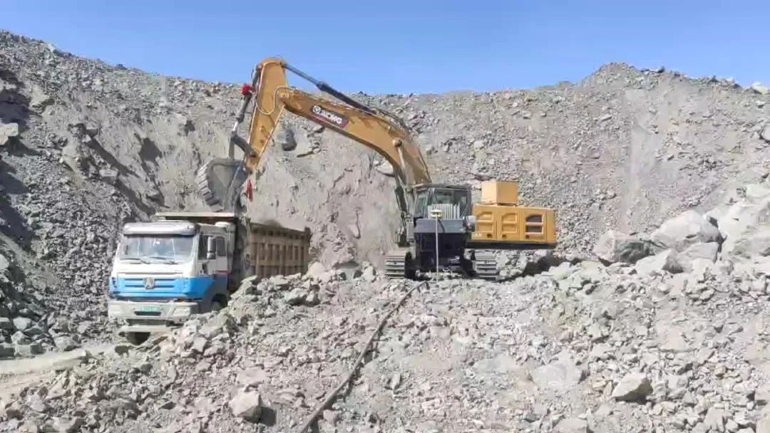 在內(nèi)蒙古某鐵礦施工現(xiàn)場,機器轟鳴聲回繞于空闊寂寥的山巔。徐工XE600EK正揮舞著堅實的臂膀,和寬體自卸車配合默契地忙碌著,一張一弛間彰顯出王者的風范。