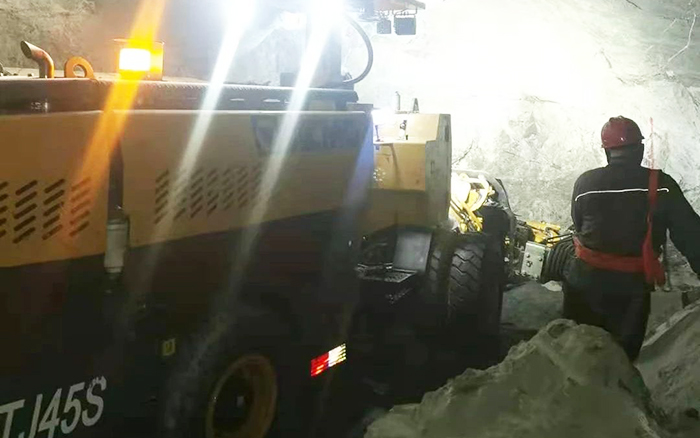 兩臺徐工CYTJ45S在河南礦場施工的巷道為3×3m的鐵礦開采,巷道相較狹窄,該設(shè)備機(jī)動靈活,可拆解成4段,保證工況的多適用性;面對鐵礦的開采,兩臺掘進(jìn)鉆車采用液壓鑿巖系統(tǒng),動力充沛,鑿巖速度大幅提升,每月每臺車進(jìn)尺約100米,在大幅減人的情況下,開采效率比之前人工開采提升30%。