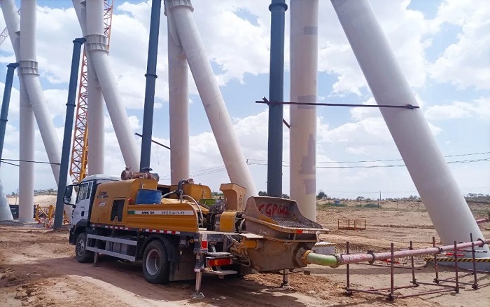 項(xiàng)目亮點(diǎn)之一的間冷塔,采用了創(chuàng)新的鋼管混凝土X柱結(jié)構(gòu),單柱高達(dá)30米,重達(dá)51.9噸。然而,隨著泵送高度的攀升,混凝土黏度急劇增加,泵送過(guò)程中極易出現(xiàn)憋壓熄火現(xiàn)象,對(duì)施工設(shè)備提出了前所未有的要求。