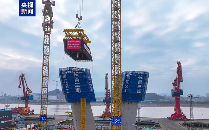 近日,在甬江特大橋施工現(xiàn)場(chǎng),徐工超大塔XGT3000-120S揮舞鐵臂,67噸的鋼筋部品被穩(wěn)穩(wěn)吊起,精準(zhǔn)安裝,徐工助力這一世界級(jí)跨江大橋建設(shè)提速加碼。