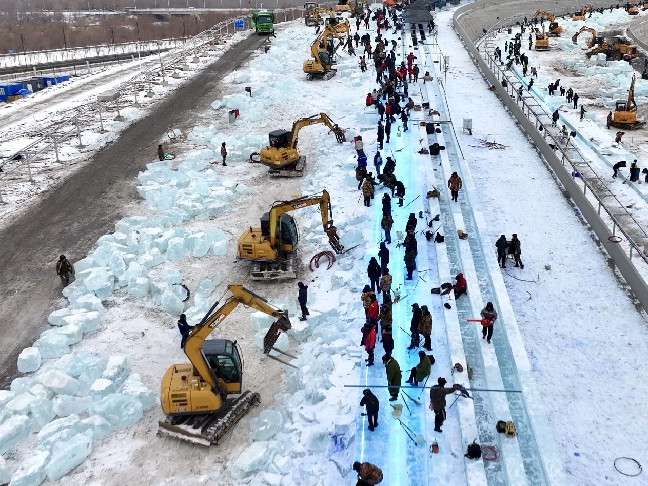 全長500米的“冰雪大滑梯”無疑是園區(qū)內(nèi)的“人氣王”,今年迎來了重磅升級(jí),滑梯滑道增加至24條,徐工挖掘機(jī)在滑梯建設(shè)中起到了關(guān)鍵作用。