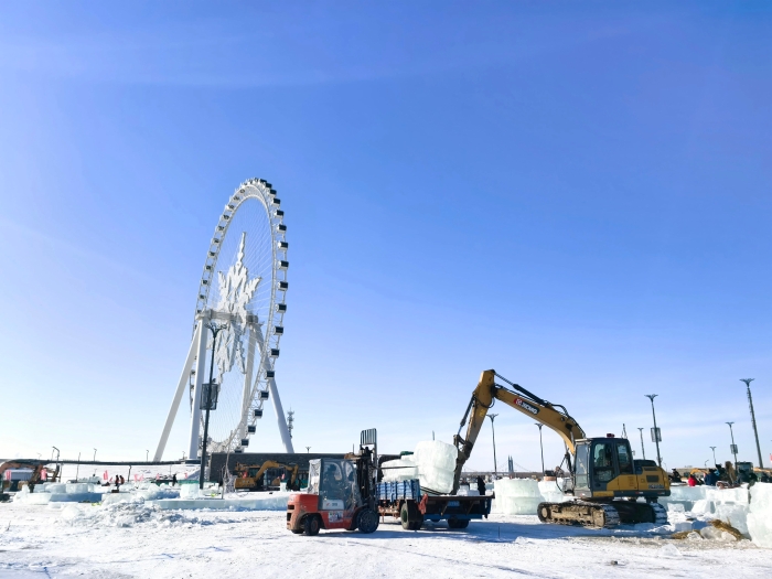 本屆哈爾濱冰雪大世界以“冰雪同夢(mèng) 亞洲同心”為主題,園區(qū)設(shè)計(jì)和建設(shè)充分融入2025年第九屆亞冬會(huì)元素,打造一座更加氣勢(shì)恢宏、美輪美奐的冰雪主題樂園。在這個(gè)以冰雪鑄造的王國中,徐工中小型挖掘機(jī)負(fù)責(zé)運(yùn)輸冰塊的重要工作,展現(xiàn)了它們力大無窮的一面。