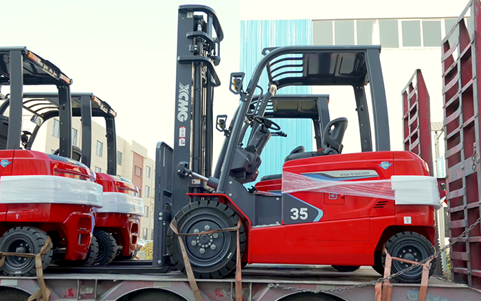 徐工叉車鯤鵬系列電動(dòng)平衡重叉車有序駛向客戶生產(chǎn)基地。