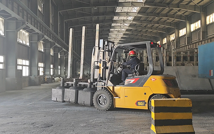 為該電解鋁車間量身推薦了徐工孔雀系列電動平衡重叉車,