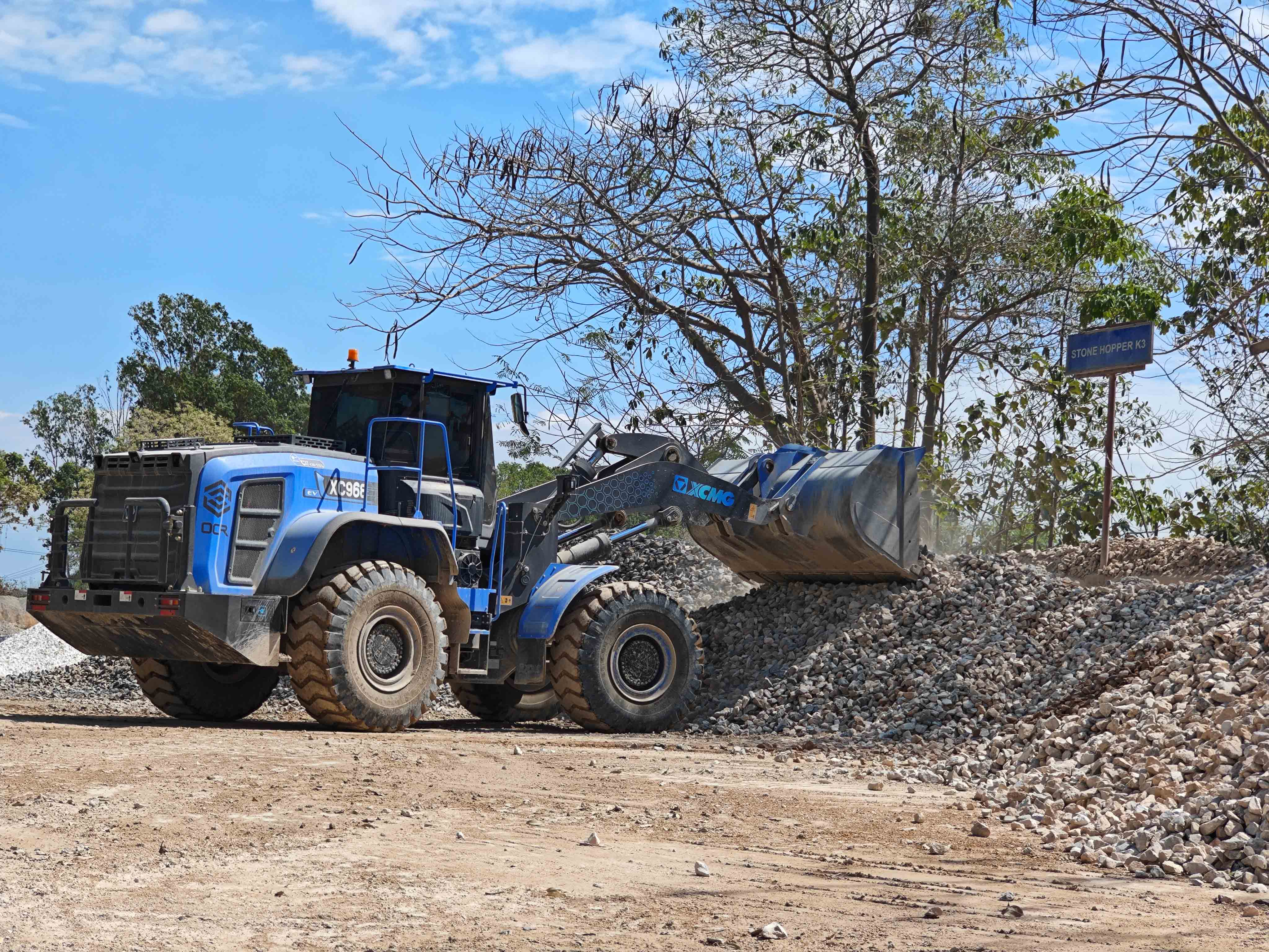 礦山生產,作業(yè)時間長,物料堅硬密度高,道路崎嶇,工況較為險重。徐工XC968-EV純電動裝載機的新能源優(yōu)勢,在礦道端的鏟裝作業(yè)優(yōu)勢非常明顯,相對密閉空間內,零排放、低噪音對工段一起作業(yè)的戶外工作人員的健康非常友好。