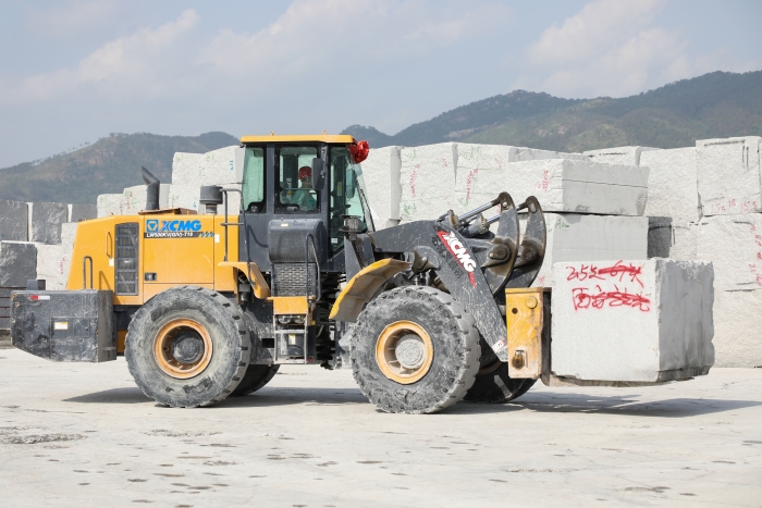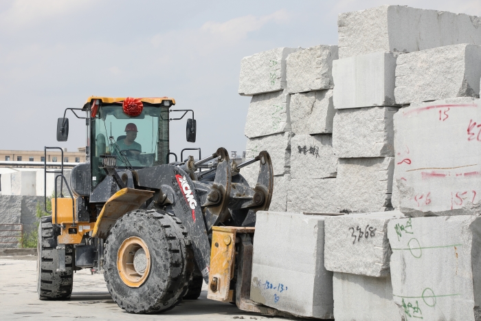 高檔花崗巖石材,以其優(yōu)美的外觀、堅硬的質(zhì)地,一直是公共設(shè)施外立面裝飾的首選??蛻粲玫倪@臺徐工LW500KV(GIV)-T18石材叉裝機已在石材加工廠使用兩年,“相比過去用的車,操控輕松方便,視野很開闊,在復(fù)雜工作環(huán)境下也非常穩(wěn)定可靠,干活效率高。”駕駛員對徐工石材叉裝機贊賞有加。