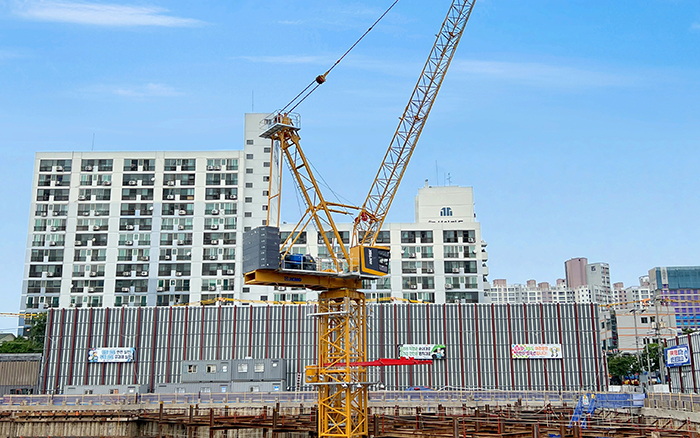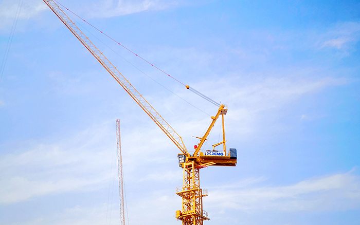 在韓國首爾,徐工塔機參建當?shù)刂R產(chǎn)業(yè)園項目,藍天白云之下,兩臺徐工XGL300-18S格外耀眼。韓國建筑密度大,項目施工空間較為有限,動臂塔機充分滿足當?shù)亟ㄔO需求。