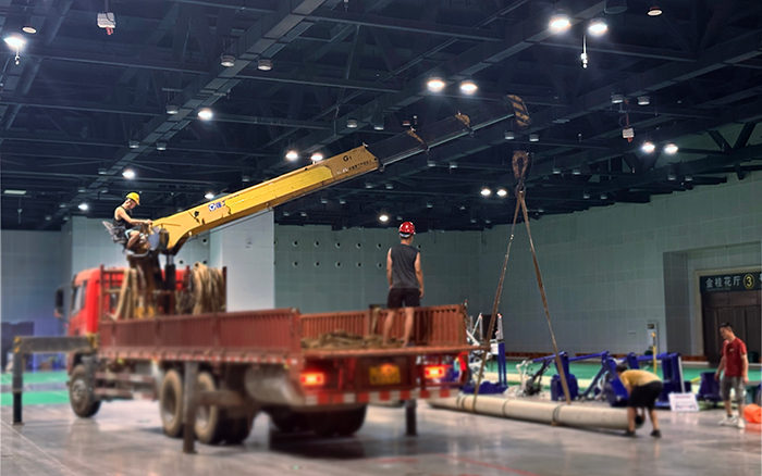 在廣西國際會展中心體育場館塑膠鋪設(shè)施工現(xiàn)場,徐工隨車起重機以硬核實力成為工程推進的 “主力軍”,贏得客戶連連稱贊。