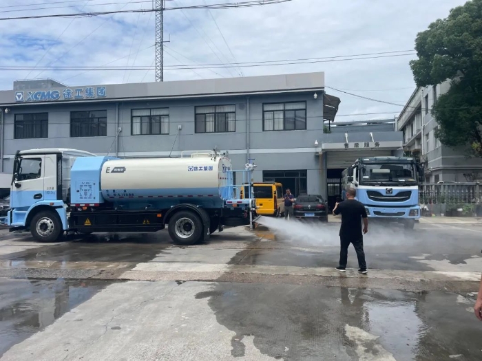 活動現(xiàn)場,徐工純電動高壓清洗車與純電動掃路車協(xié)同作業(yè),成為焦點。純電動高壓清洗車宛如一位精準(zhǔn)高效的“清潔能手”,憑借大于8Mpa的高壓水泵及24m的對沖清洗寬度,對道路進(jìn)行沖洗。無論是頑固的油污、泥沙,還是藏匿在縫隙中的灰塵,都能被迅速沖刷干凈。