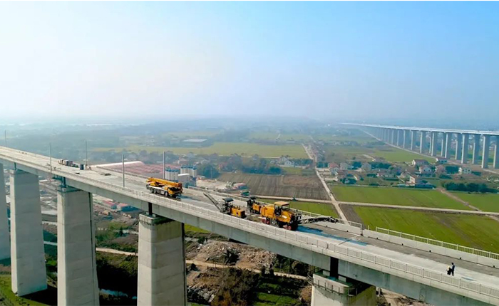 通過毫米級(jí)精度控制技術(shù),實(shí)現(xiàn)了復(fù)雜橋區(qū)多場(chǎng)景施工的高效協(xié)同,有效提升了橋面平整度與施工效率,確保了全球最大跨度斜拉橋的鋪裝質(zhì)量。