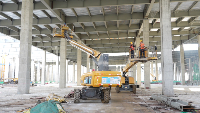 近日,在總投資550億的合肥國(guó)顯第8.6代AMOLED生產(chǎn)線項(xiàng)目主廠房?jī)?nèi),20余臺(tái)徐工高空作業(yè)平臺(tái)在酷暑烈日下,呈現(xiàn)了一場(chǎng)精彩的“群車(chē)協(xié)奏”。