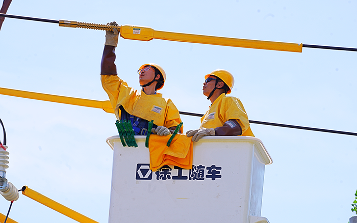 徐工 GKJH22A 絕緣斗臂車在此次作業(yè)中優(yōu)勢盡顯。其新型工作斗智能液壓發(fā)電技術(shù),極大提升了發(fā)電可靠性,降低了液壓溫升,延長了系統(tǒng)壽命,發(fā)電噪聲的降低也為作業(yè)環(huán)境減少了干擾,讓工作人員能更清晰地溝通協(xié)作,連續(xù)作業(yè)時間的延長則有力保障了施工進度。