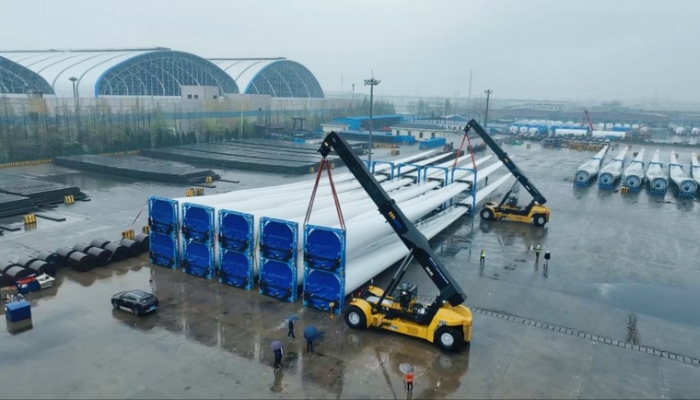 本次交付的國(guó)產(chǎn)最大噸位風(fēng)電正面吊XCS70KS,可實(shí)現(xiàn)70噸/4米貨物吊裝,60噸/4米貨物帶載行走作業(yè),雙機(jī)可抬吊140噸貨物,大幅提升港口大、重件轉(zhuǎn)運(yùn)效率。