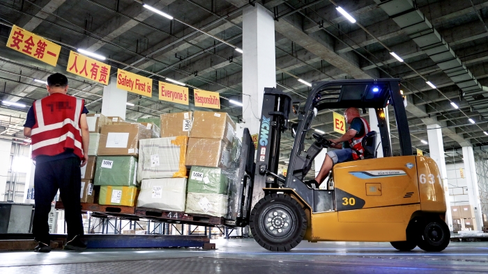 機(jī)場(chǎng)前置倉(cāng)作為貨物進(jìn)入航空運(yùn)輸鏈路的首站,承擔(dān)著集中收貨、分揀、暫存等任務(wù),具有作業(yè)繁忙、吞吐量巨大、連續(xù)工作時(shí)間長(zhǎng)的鮮明特征。面對(duì)日均數(shù)千噸的貨物周轉(zhuǎn)量,徐工定制化部署新能源叉車集群,匹配不同型號(hào)的產(chǎn)品來(lái)滿足搬運(yùn)需求。
