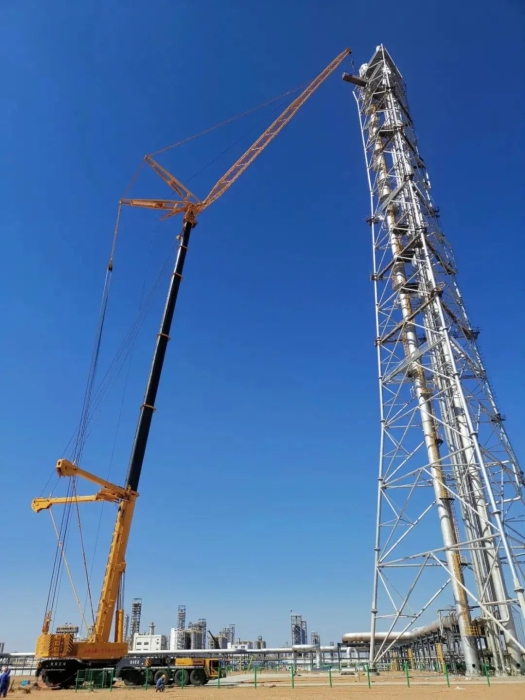 【挑戰(zhàn)】 石化火炬塔吊裝項(xiàng)目,施工場(chǎng)地有限,卻需完成各類支架、框架及管道的密集吊裝任務(wù)。如何在“巴掌地”里施展拳腳?