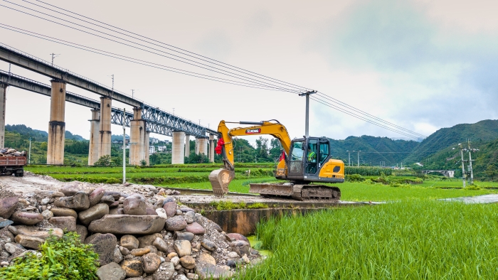 雨水沖刷著稻田,卻沖不淡建設(shè)者的熱情。泥濘中,“徐工金”既是開山利器,更是苗鄉(xiāng)建設(shè)的希望。這背后,是產(chǎn)品實(shí)力的彰顯,更是大國重器助力鄉(xiāng)村振興的生動寫照。