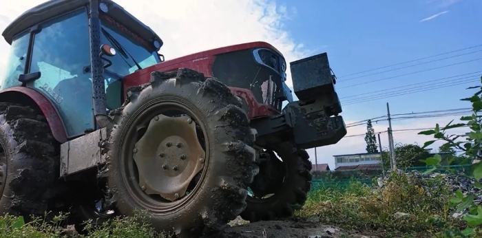 這臺(tái)機(jī)子配置高的很:用的大底盤(pán),動(dòng)力輸出軸也是加固強(qiáng)化過(guò)的,而且它標(biāo)的是80匹馬力,實(shí)際藏著30%的儲(chǔ)備動(dòng)力,可以達(dá)到90匹馬力,就算半個(gè)輪胎陷進(jìn)去,也能輕松開(kāi)出來(lái),在水田這種復(fù)雜地方,是真省心。