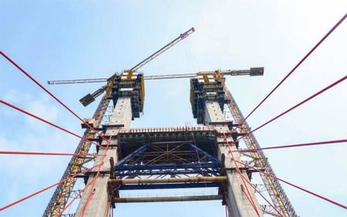 隨著4號(hào)主塔、3號(hào)主塔順利封頂,大橋建設(shè)步入快車道。