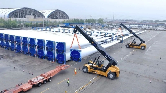 目前,XCS70KS風(fēng)電正面吊已在揚(yáng)州港順利完成多次大型風(fēng)電部件裝卸任務(wù),其穩(wěn)定高效的性能成為長三角地區(qū)智慧口岸建設(shè)的標(biāo)桿力作。該裝備的成功應(yīng)用,不僅全面提升了港口運(yùn)營質(zhì)效,也為全國港口的智能化升級(jí)提供了可復(fù)制、可推廣的徐工-揚(yáng)州港樣板。