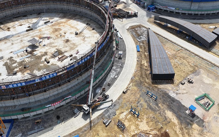 隨著各環(huán)節(jié)建設(shè)有序推進(jìn),3座22萬(wàn)立方米的LNG(液化天然氣)儲(chǔ)罐正式進(jìn)入罐體墻體澆筑。每座儲(chǔ)罐高達(dá)50多米,相當(dāng)于18層樓高度,海風(fēng)裹挾的高濕度環(huán)境,給高空作業(yè)難度層層加碼!