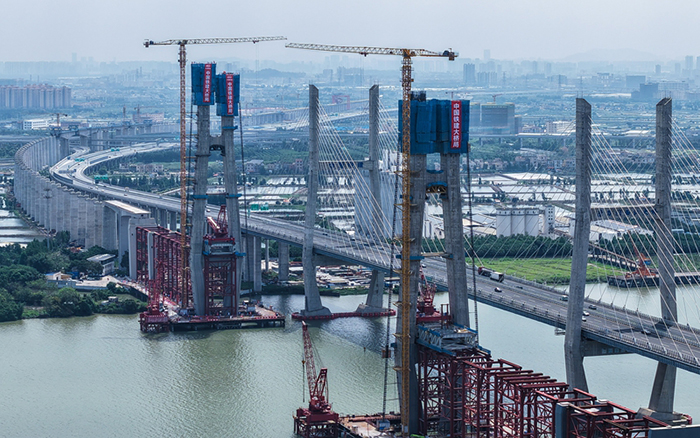 目前,深江鐵路跨磨刀門水道主橋東主塔已封頂。