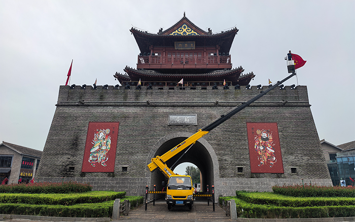 文昌閣前,一抹抹 “中國紅” 悄然升起。徐工 M 系列 GKS32 高空作業(yè)車伸展長臂,穩(wěn)穩(wěn)將施工人員送達(dá)高空作業(yè)點(diǎn)。最大作業(yè)高度32 米,精準(zhǔn)覆蓋建筑立面,轉(zhuǎn)臺 360° 連續(xù)回轉(zhuǎn)間,國旗已平穩(wěn)就位。