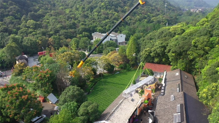 在杭州大清谷影視拍攝基地,一場(chǎng)“靜默式”吊裝正在上演。全球首款四橋八節(jié)臂130噸汽車(chē)起重機(jī)——徐工G2代XCT130G8-1,將20米長(zhǎng)、2.5噸重的劇組燈架穩(wěn)穩(wěn)送至跨度46米外的房屋上空。而這一“定格”,就是整整三天。