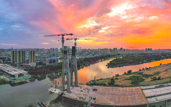 此次參建的項目是阜裕大橋項目,主要承接橋梁主塔的吊裝任務(wù)。阜裕大橋全長1735米,橋梁長1127米,主橋采用獨塔斜拉橋結(jié)構(gòu),主塔高95.6米,主橋斷面為60米超寬幅鋼箱梁,是國內(nèi)市政最寬鋼箱梁橋,建成后將成為阜陽的又一個“新地標(biāo)”。