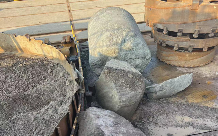該橋主墩基礎共采用18根6.3米超大直徑鉆孔樁,這是目前國內直徑最大鉆孔樁基礎。其樁深106米,水深66米,入巖40米,部分樁基最深達到116米。徐工XR1600E旋挖鉆機需要層層穿越強風化花崗巖,弱風化破碎花崗巖、碎裂巖、微風化破碎流紋巖等復雜地層,在海底深處為大橋夯基。