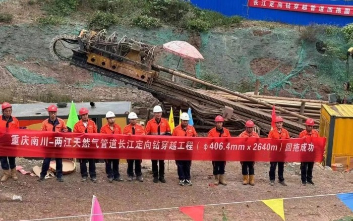 工程橫跨長江,施工路段地表層由粉質(zhì)粘土覆蓋,下層土質(zhì)為泥巖砂巖互層,地質(zhì)復(fù)雜。定向鉆穿越段采用D406.4×10.0 L415M直縫埋弧焊鋼管,穿越長度為2640米,深度達143米,穿越管道與長江底部最小間距為84.66米。施工設(shè)備的作業(yè)能力、工作效率都面臨非常大的考驗。