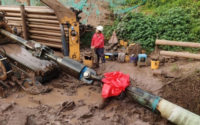 兩臺徐工水平定向鉆機協(xié)同作業(yè)