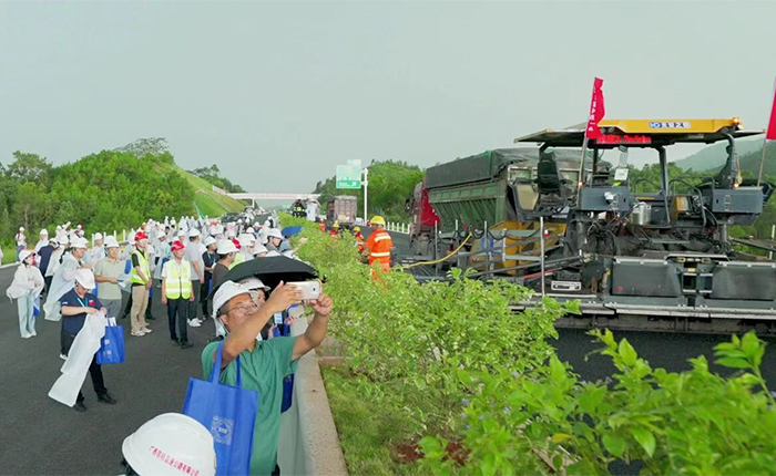 近日,在廣西梧州舉辦的“第八屆平安百年品質(zhì)工程交流會”上,蒼容高速展示了瀝青路面無人化智能攤鋪碾壓集群施工技術(shù)。這是廣西公路建設(shè)首次應(yīng)用這一先進(jìn)技術(shù),標(biāo)志著當(dāng)?shù)毓肥┕は蛑悄芑?、無人化方向邁出了重要一步。